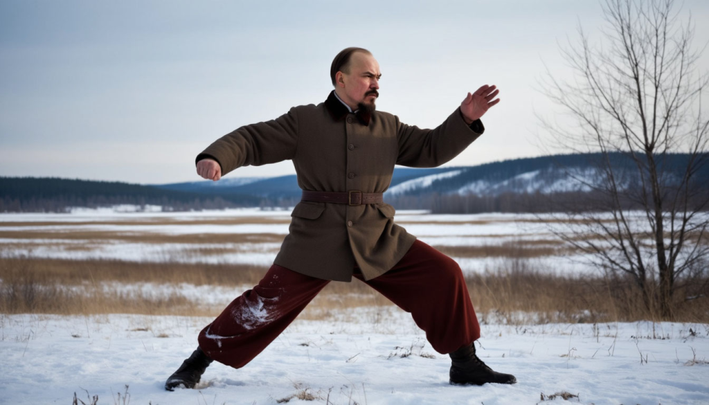 На небольшой поляне тренировался китаец по имени Ли Чжэн — политический ссыльный, как и Ленин. Он совершал невероятные движения: молниеносные удары руками и ногами, прыжки, блоки. Его тело двигалось с силой и грацией дикой кошки. Это было кунг-фу — древнее китайское боевое искусство.